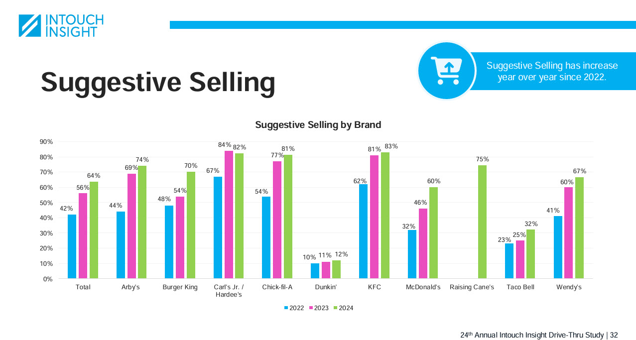 The annual QSR Drive-Thru Study released for the last 20 years is well recognized in the industry. The QSR Drive-Thru Study 2024 conducted by QSR Magazine in partnership with Intouch Insight using mystery shoppers and sample locations primarily focused on the following touch points which are used in comparing drive-thru and sprint-thru for this time study: